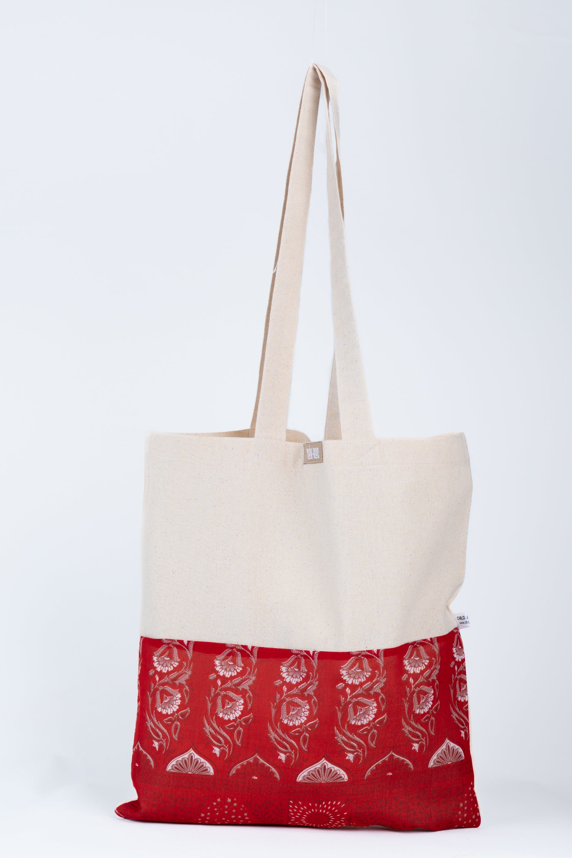 Classic tote bag that can be carried by hand or on the shoulder. This bag is made from traditional Sri Lankan clothing that is no longer used by local women.
