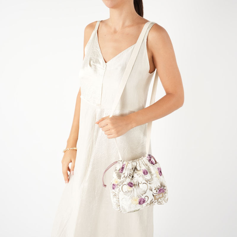 This mini bag is designed by upcycling surplus and waste fabrics from traditional Sri Lankan handlooms.