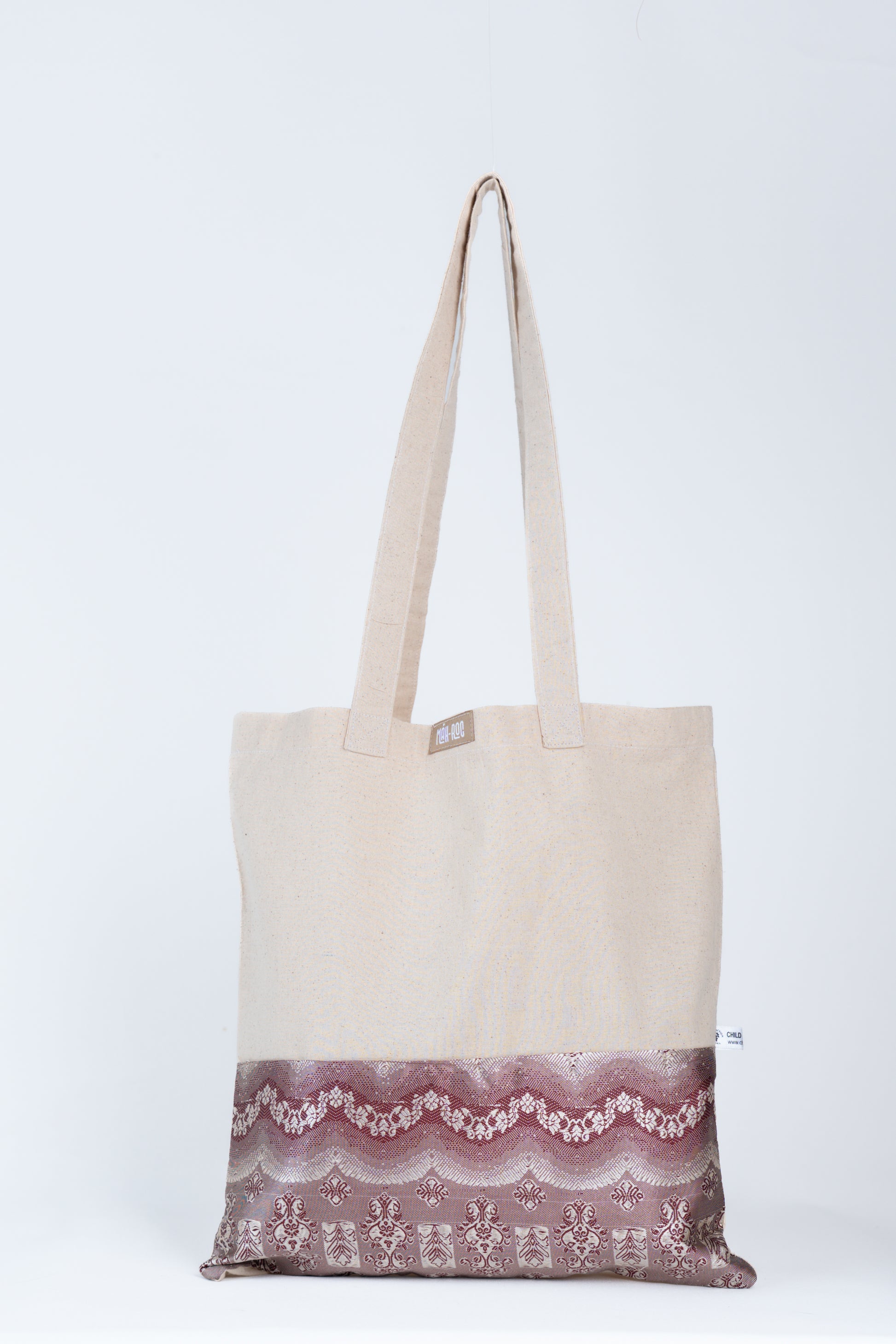 Classic tote bag that can be carried by hand or on the shoulder. This bag is made from traditional Sri Lankan clothing that is no longer used by local women.