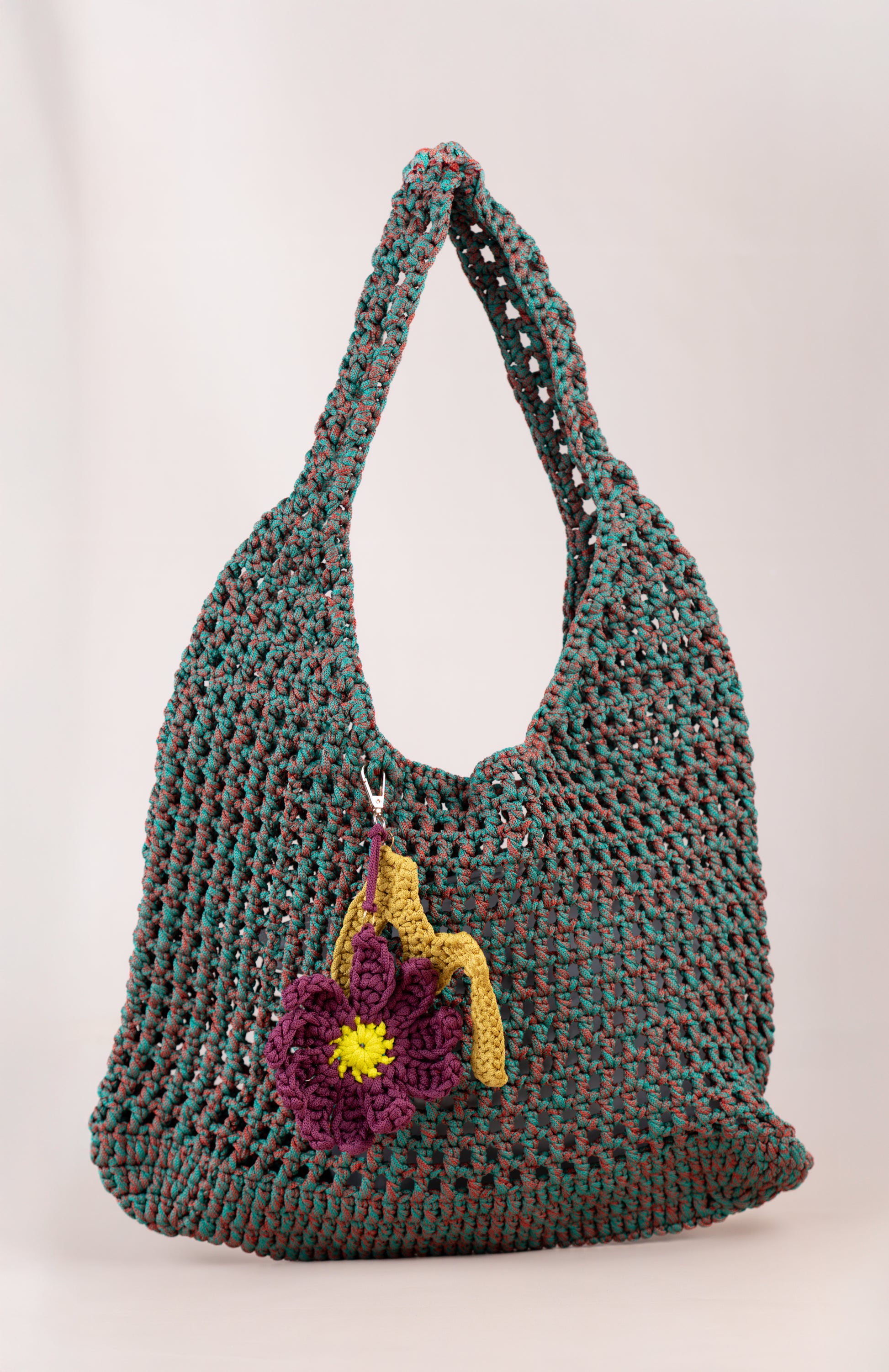 Çiçek anahtarlık çıkarılabilir şekilde tasarlandı; ister çantanın süsü, ister anahtarlarınıza eşlik eden bir detay olarak kullanılabilir.