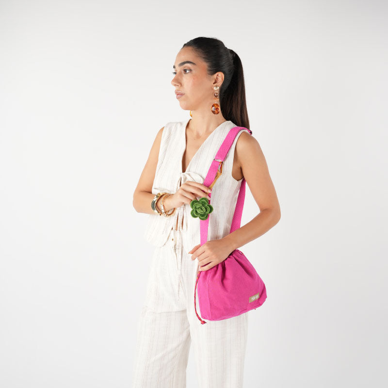 Mini Omuz Çantası – El Dokuması Koyu Pembe