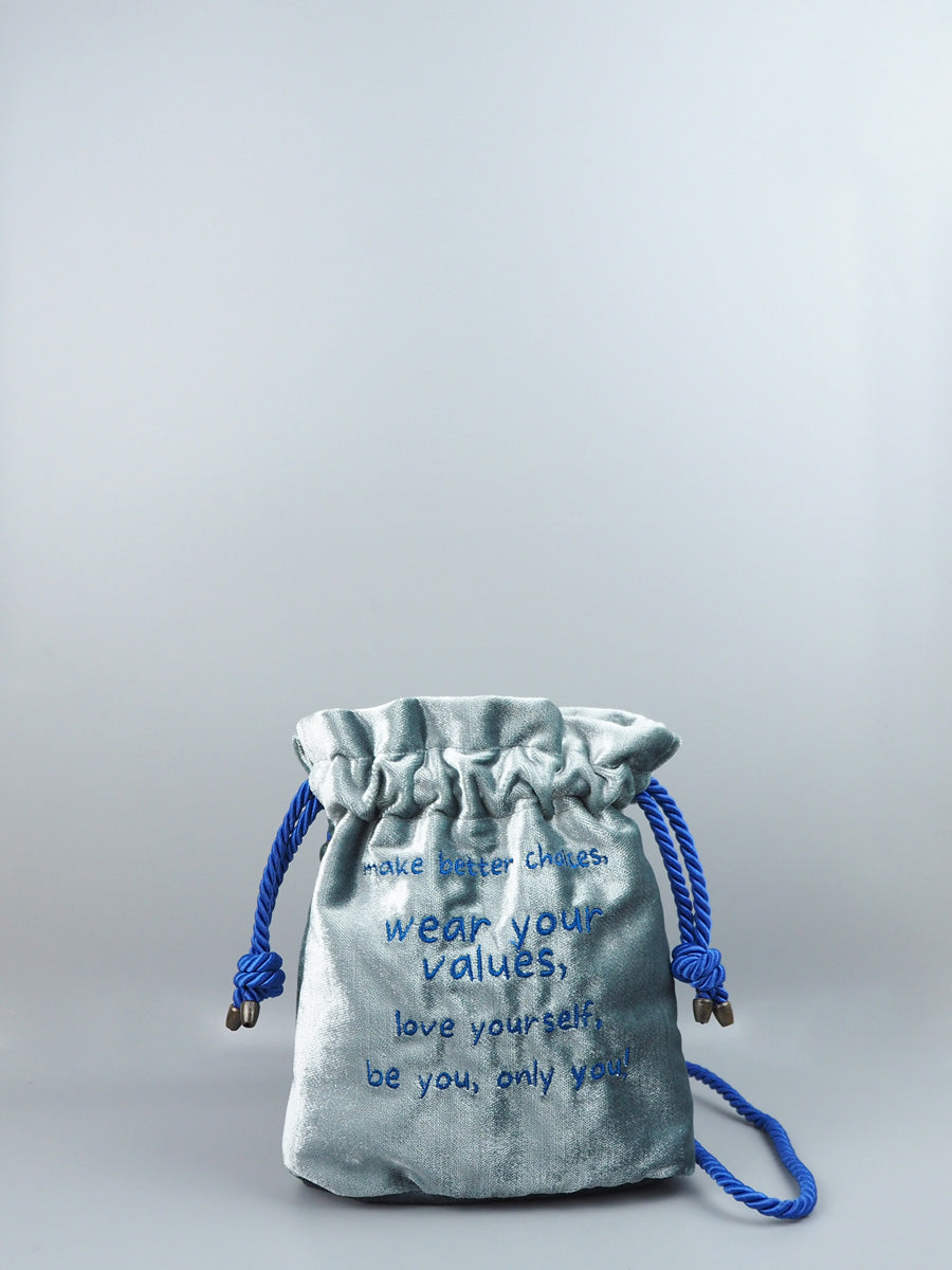 Mini Kadife Omuz Çantası Mavi Çiçekli